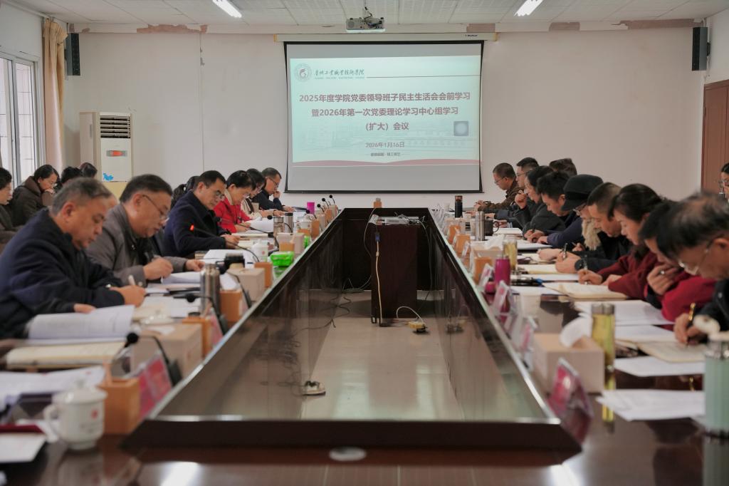 1月16日上午,学院召开2025年度党委领导班子民主生活会会前集中学习研讨暨2026年第一次党委理论学习中心组学习(扩大)会议,学院党委书记邸姜滔主持会议并作总结讲话。会上深入学习《中国共产党章程》、习近平总...【详情】