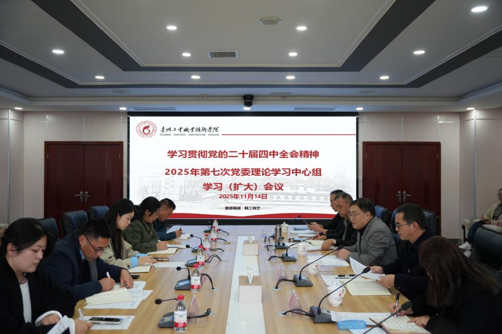 11月14日上午,学院在清镇校区召开2025年第七次党委理论学习中心组(扩大)会议,深入学习贯彻党的二十届四中全会精神。学院党委书记蔡志坚主持会议并讲话,党委班子成员,各职能部门负责人、各系党政负责人参加会议。