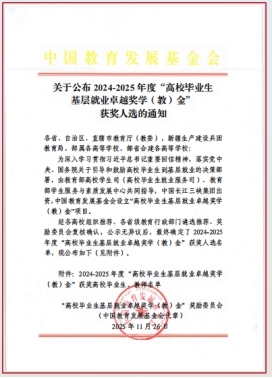 为深入学习贯彻习近平总书记重要回信精神,落实党中央、国务院关于引导和鼓励高校毕业生到基层就业的决策部署,由教育部高校学生司(高校毕业生就业服务司)、教育部学生服务与素质发展中心共同指导,由中国长江三峡集团出资,中国教育发展基金会设立“高校毕业生基层就业卓越奖学 (教)金”项目。贵州工业职业技术学院智能制造工程系2018届优秀毕业生——陈辉文同学,经贵州省教育厅遴选推荐,最终获得教育部颁发的2024-2025年度“高校毕业生基层就业卓越奖学(教)金”,这也是我校毕业生连续第三年获此殊荣。