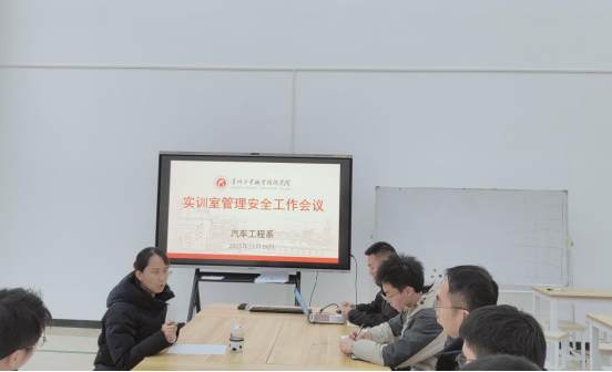 2025年11月18日,汽车工程系召开实训室管理安全工作会议,系主任张俊玲、教学实训科科长陈景元及全体实训室管理员老师参加会议。