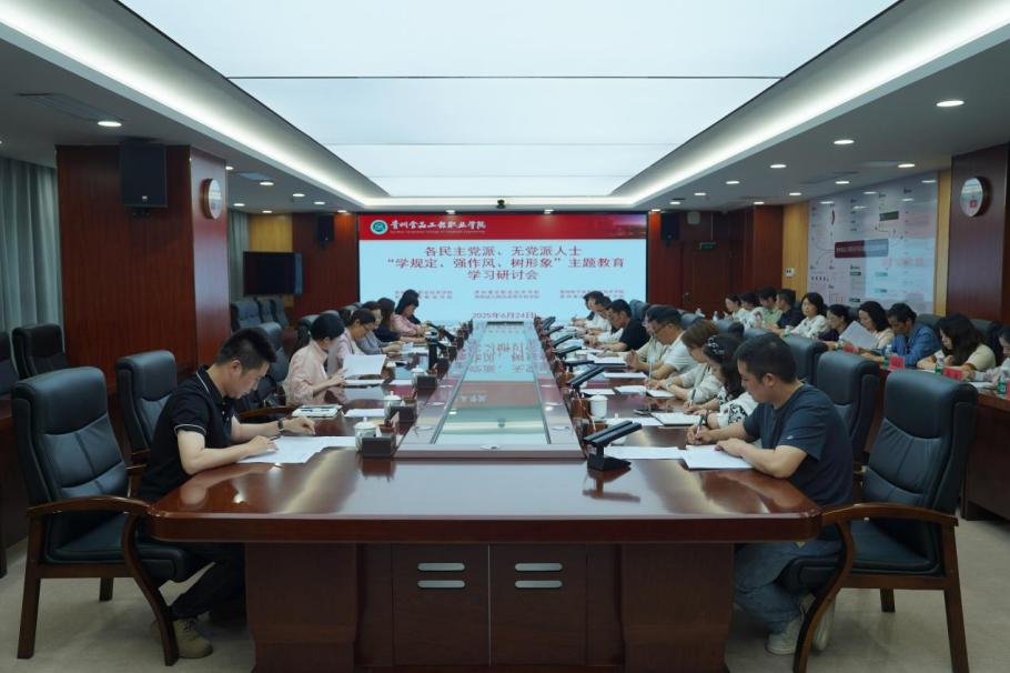 6月24日,学院民主党派参加贵州食品工程职业学院牵头举办的各民主党派和无党派人士“学规定、强作风、树形象”主题教育学习研讨会,贵州工业职业技术学院、贵州建设职业技术学院、贵州电子商务职业技术学院、贵阳幼儿师范高等专科学校、贵州食品工程职业学院、贵州财经职业学院六所院校宣传统战处相关负责同志,各民主党派、无党派人士及党外知识分子代表参加会议。贵州食品工程职业学院党委委员、副院长杨卫出席会议并讲话。