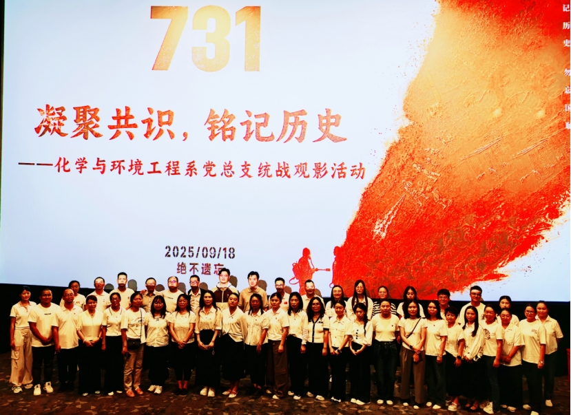 为纪念中国人民抗日战争暨世界反法西斯战争胜利80周年,深切缅怀革命先烈,弘扬伟大抗战精神,2025年9月18日,化环系党总支组织开展了“凝聚共识,铭记历史”主题统战观影活动。化环系党政领导班子成员、全体党员教师以及民主党派成员、无党派人士等统战成员共同参加了此次活动。