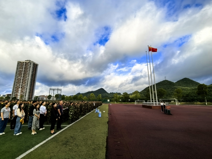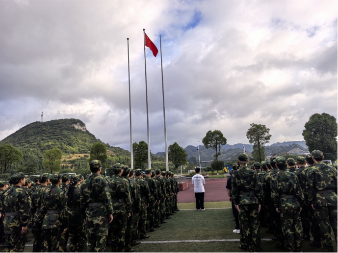 朝阳下,伴随着庄严的国歌声,全场师生肃立行注目礼,五星红旗冉冉升起,开启了新一周的学习生活。