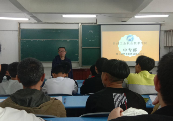 2019年5月22日中午12:40,贵州工业职业技术学院中专部第七届团支部学生会换届选举大会在老校区3教330教师隆重举行,会议由黄宗正老师主持,化工学校常务副校长刘春老师出席并讲话、化校全体辅导员参会。