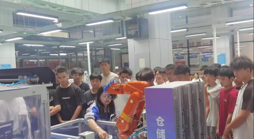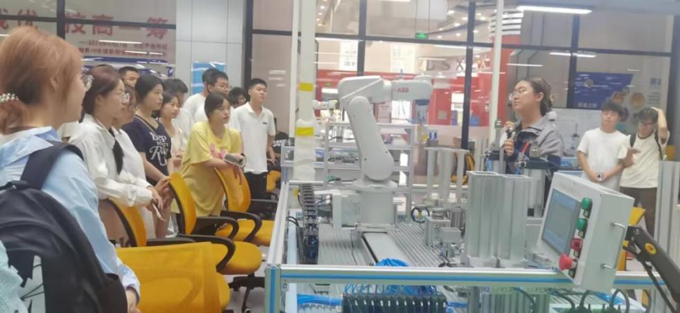 在中德赛训中心,刘靖璇老师和同学们亲切地交流,并让同学们尝试操作机器人,当看到机器人自动抓取物品,并通过编程可以实现不同的移动路径和时间控制时,同学们颇感兴趣,期待以后的学习。
