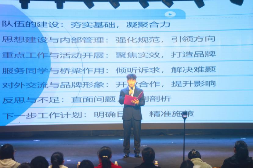之后会议听取了学生会、社团联合会作的年度工作汇报及优秀学生代表的发言,并围绕党团建设、学术科技、创新创业、文化素养、社团工作、学生会工作六大类别对年度优秀学子进行表彰,鼓励他们继续发挥模范带头作用,以榜样力量带动集体进步。