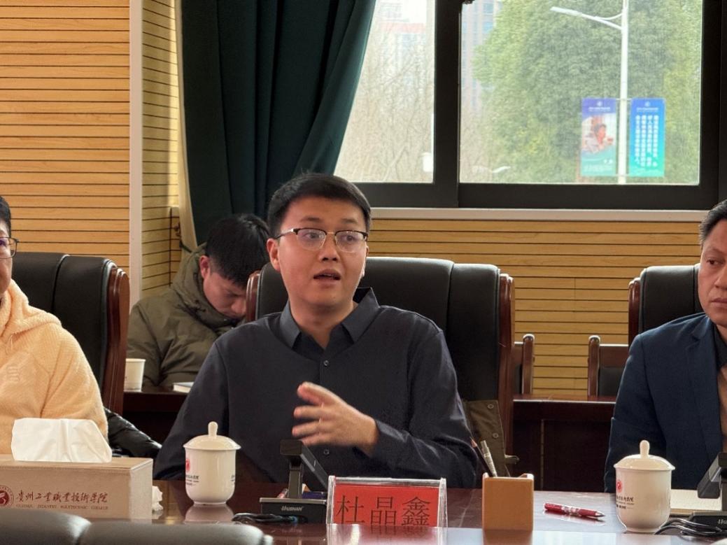 2026年1月7日,我院与贵州贵安新区光谷智算园区相关企业代表开展校企合作专项洽谈会,双方围绕产教融合深化、人才培养协同推进等核心议题展开深入交流,旨在实现教育资源与产业需求的精准对接,为贵安新区智能制造和算力产业发展注入人才活力。贵安光谷园区企业贵州超能时代科技有限公司总经理张吕刚 、金迈克(贵州)新材料科技有限公司总经理张剑锋、贵安新区威迈尔科技有限公司总经理何世广 、瓴泓智能科技(贵州)有限公司总经理钟莲伟、贵州富根科技有限公司总经理王传根、罗尔西科关节模组科技(杭州)有限公司、罗尔西科智能传动(贵州)有限公司总经理叶盛、贵州品信人力资源公司总经理李怡光及贵州贵安新区光谷智算园区运营管理有限公司总经理杜晶鑫等,同我院化学与环境工程系、智能制造工程系、大数据与信息工程系相关负责人参加会议,会议由招生就业处负责人王斌主持。