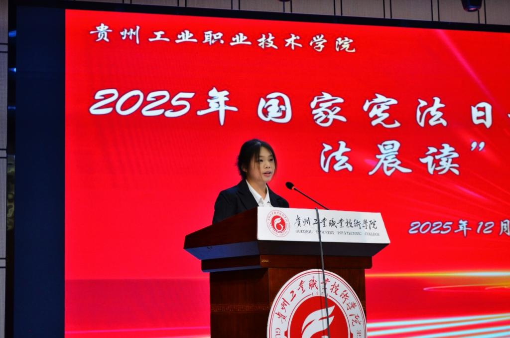 2025年12月4日,我国迎来第十二个国家宪法日。贵州工业职业技术学院作为贵州省分会场承办单位,隆重举办了2025年国家宪法日“宪法晨读”活动。本次活动以“宪法伴我成长”为主题,通过“线上+线下”联动,与北京主会场及全国师生同步开展宪法学习,打造了一堂具有仪式感与参与感的法治公开课,切实推动宪法精神在青年学生心中扎根生长、蔚然成风。