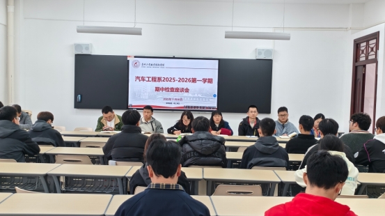 2025年11月5日中午12:50,汽车工程系在启知楼301室召开2025--2026学年第一学期教学期中检查座谈会,汽车工程系副主任何子淑主持会议,实训教学科科长、专业中心主任、课程组长、教务处、体育系、人文与艺术系等老师参加会议,汽车工程系2024级、2025级每班2名学生代表参加座谈会。