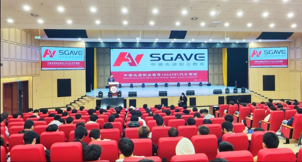 我院是教育部中德先进职业教育合作 (SGAVE)项目首批试点院校,目前,项目各分项工作正在有序开展、顺利进行,为了使同学们更好地了解SGAVE项目建设的背景、过程和意义,同时也为了更好推进SGAVE项目首批学生遴选组班相关工作,汽车工程系2023年12月15日下午在清镇校区图信大楼大礼堂开展SGAVE项目宣讲会。会议由汽车工程系主任张俊玲教授主讲。与会人员有SGAVE项目成员2023级汽车检测与维修技术专业300余名学生及其辅导员。