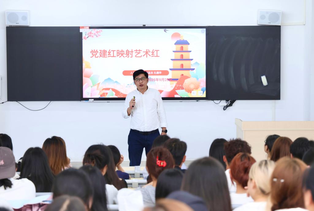 活动伊始,系党总支书记孔德华为新生讲授“开学第一课”,围绕理想信念教育,阐释了党建与艺术的紧密联系、红色教育的意义及艺术表现形式的多样性,并介绍了系部迎新音乐会等实践安排。