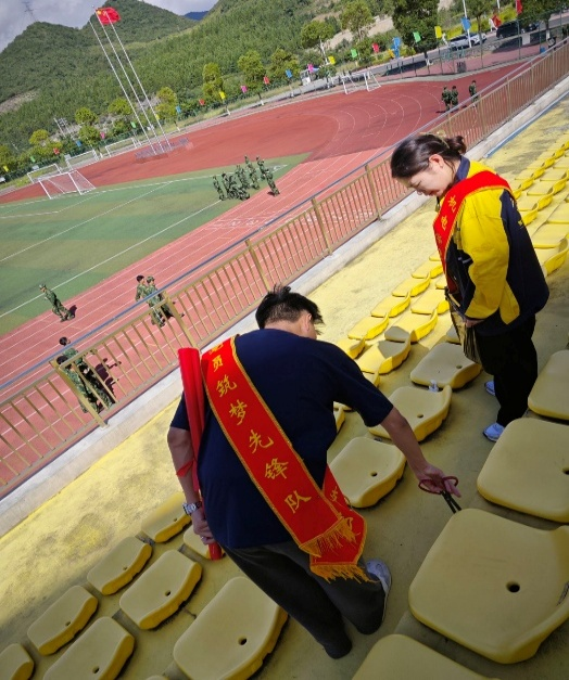 为保障军训场地环境整洁,营造文明校园氛围,智能制造工程系志愿1+N小组成员,于2025年9月28日在贵州工业职业技术学院清镇校区军训场,开展“先锋领航,红心服务”专项垃圾清理志愿服务活动;