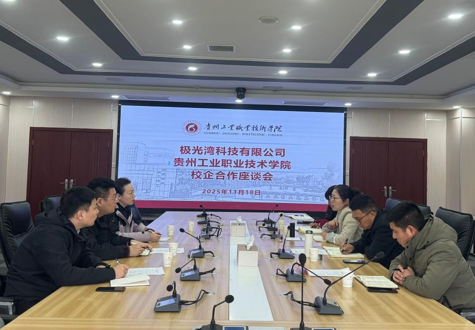 为深化产教融合,推动校企协同育人,2025年11月18日,贵州工业职业技术学院与极光湾科技有限公司(动力制造公司)校企合作座谈会在学院顺利召开。会议由学院校企合作处处长陈怡主持,智能制造工程系党总支书记王京、汽车工程系党总支副书记乔明星及企业代表极光湾科技有限公司人力资源总监伍霞影等双方相关人员参会。