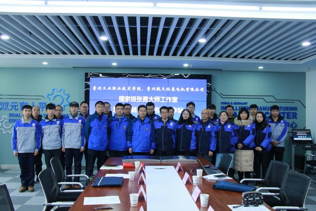 机电系国家级张勇大师工作室暨智能制造校企名师工作站揭牌仪式在贵州工业职业学院中德赛训中心举行。智能制造校企名师工作站项目于2019年6月立项,引进了国家级张勇大师工作室,与省级名师李莉娅教授工作室共同合作筹建创新型校企合作平台,致力于“打造智能制造校企合作创新平台、实施培养双师型队伍和高技能职业素养学生的两个核心任务,实现技能传授、师资培养、人才输送、技术交流的四个目标”。张勇大师工作室的进驻与校内名师团队合作,有利于深度校企融合,推动校企间开展技术交流,加快高技能人才聚集,形成技术创新团队;通过聘请企业专家将专业新技术带到学校,与骨干教师们面对面交流,提高教师们的实际解决问题及创新能力,逐步为中小型智能制造企业提供技术服务,并整合企业技术及学校人力资源,开展课题研究及技术开发。
