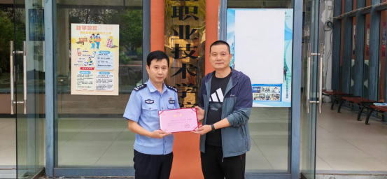 当日上午,党委保卫工作部部长管鹏程代表学校向清镇市公安局滨湖派出所副所长廖才勇同志颁发聘书,正式聘任其担任学校法治副校长。