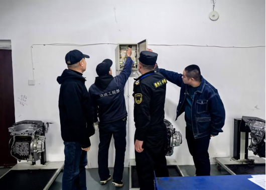 2025年11月17日至21日,排查小组分别对清镇校区及观山湖校区的办公楼、教学楼、实训楼、学校食堂、学生寝室、图书馆等重点场所聚焦核心安全隐患开展精准排查:一是重点核查违规使用大功率电器情况,严厉杜绝各类用电违规行为;二是全面排查私拉乱接电线、消防通道堵塞等问题,保障用电规范与通道畅通;三是对灭火器、消防栓等消防设施进行逐一核查,确保设备完好可用;四是针对现场发现的线路老化、消防设备摆放不规范等隐患进行整改。