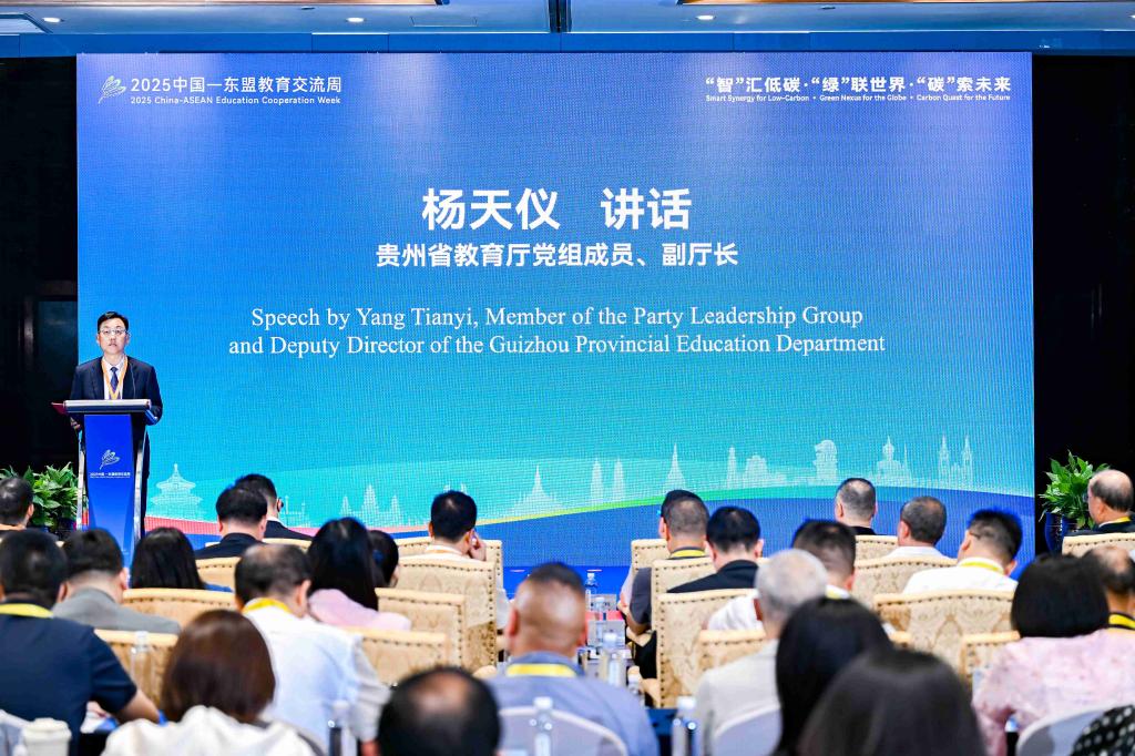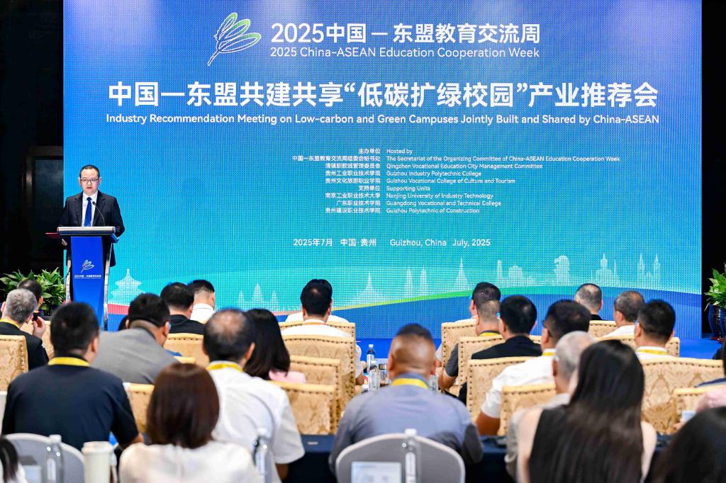 7月25日,由中国—东盟教育交流周组委会秘书处、清镇职教城管理委员会、贵州工业职业技术学院、贵州文化旅游职业学院联合主办的中国—东盟共建共享“低碳扩绿校园”产业推荐会在贵州贵阳中国—东盟教育交流周永久会址举办。本次会议以“‘智’汇低碳·‘绿’联世界·‘碳’索未来”为主题,吸引了来自中国与东盟国家的政府官员、教育专家、行业企业代表等200余人参会,共同探讨低碳校园建设与绿色产业发展新路径。