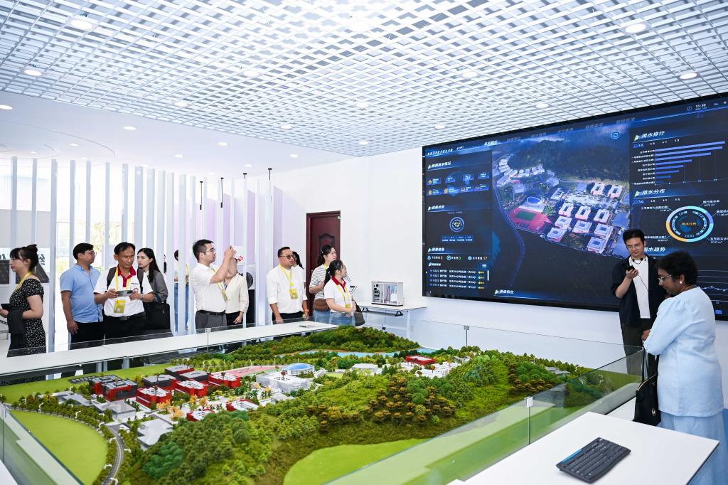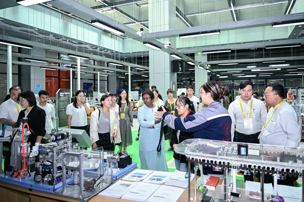 最后,嘉宾们重点参观了贵州工业职业技术学院的“贵州绿色低碳校园基地”。这里不仅是学院绿色低碳教育的实践平台,更是展示贵州乃至全国绿色低碳校园建设成果的重要窗口。通过实地参观,嘉宾们对绿色低碳校园建设有了更加直观、深刻的认识,纷纷表示将把贵州的经验与做法带回各自的国家与地区,共同推动全球绿色低碳校园建设事业的发展。