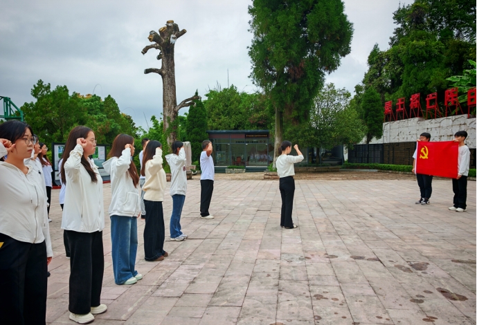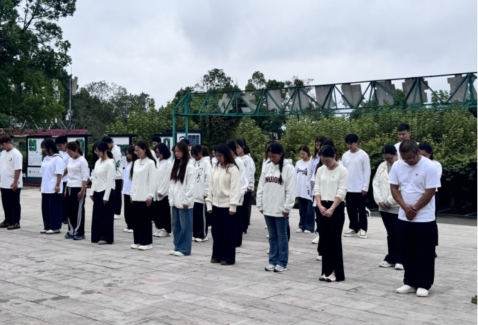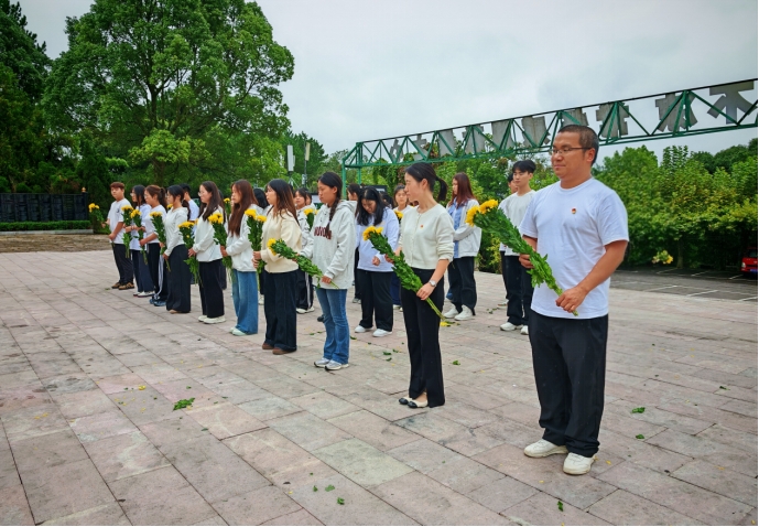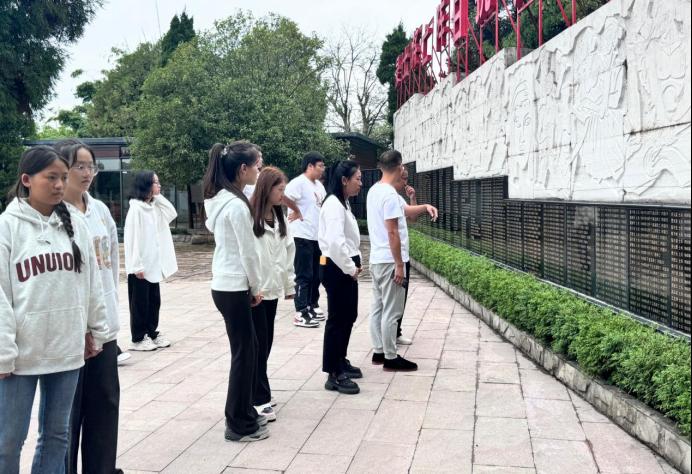 学生党支部党员代表向烈士纪念碑敬献花篮,仔细整理挽联,致以最崇高的敬意。随后,全员肃立默哀三分钟,低头追思先烈们为民族独立、人民解放抛头颅洒热血的壮烈事迹。这一刻,时间仿佛静止,唯有心中激荡的感恩与信念——今日的和平与繁荣,正是无数英烈以生命铸就的基石。