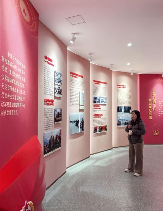 在校园内的双拥教育基地,党员同志及学生代表认真聆听讲解员的详细介绍,通过观看丰富的图文史料和实物展陈,深入了解了军民团结、双拥共建的光辉历史和感人事迹。