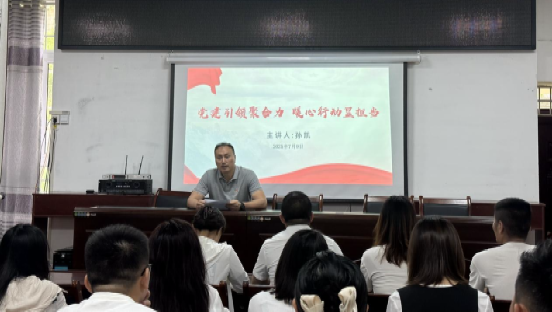 孙凯副院长为后勤处全体党员及后勤服务人员上了一堂生动深刻的党课。他结合乡村振兴的时代背景和后勤工作的实际,强调了党建引领在推动各项工作中的核心作用,鼓励学院各个服务单位要强化责任担当,将党建工作与后勤服务、乡村帮扶紧密结合,以实际行动践行初心使命。最后,孙凯副院长号召大家共同学习习近平总书记在贵州考察时的重要讲话精神:“在乡村振兴上开新局”。