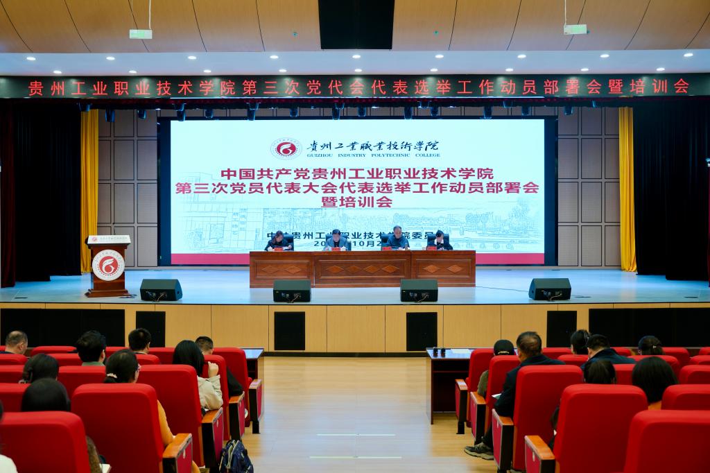 10月24日下午,贵州工业职业技术学院召开第三次党员代表大会代表选举工作动员部署会暨培训会。学院党委书记蔡志坚主持会议并作总结讲话,党委领导班子成员,各系部处党政主要负责人、专职组织员、支部书记,第三次党代会代表选举各工作小组成员参加会议。