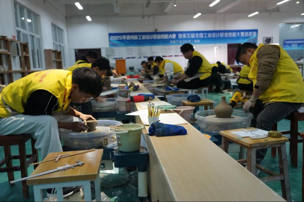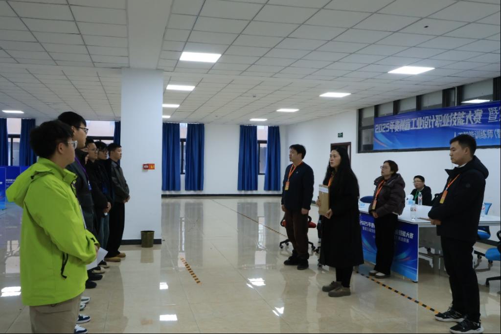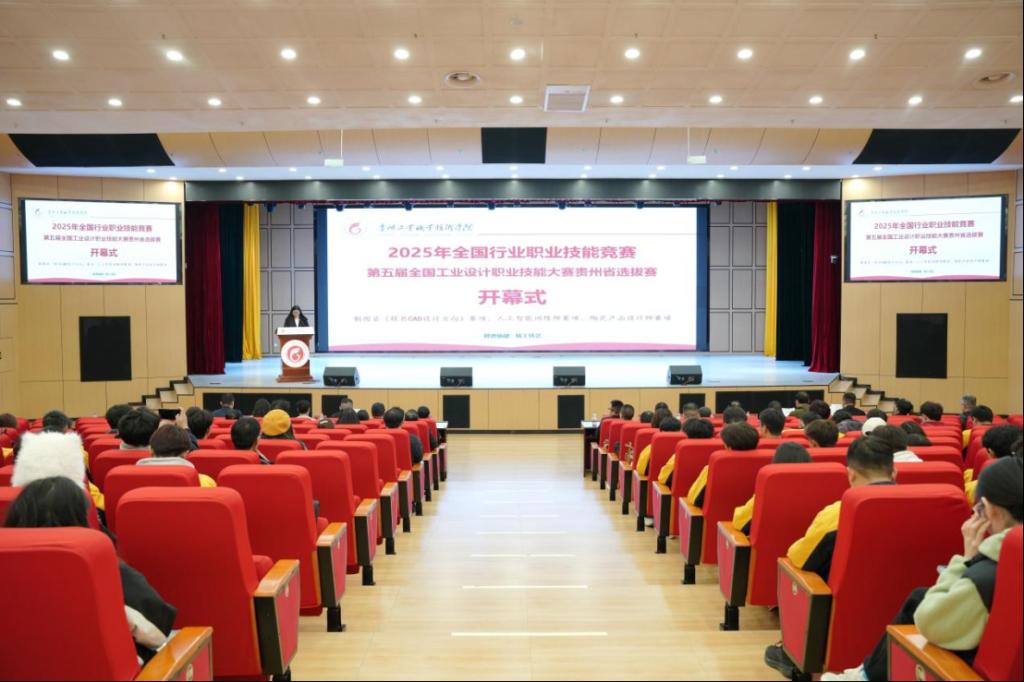 为落实人才强国战略,弘扬劳模精神、工匠精神,激励青年走技能成才之路,培养大国工匠与高技能人才,推动工业设计产业高质量发展。2025年11月21日至23日,由贵州省装备制造业协会、贵州省工艺美术协会、贵州省家具协会、贵州省职业技能鉴定考评指导中心主办,贵州工业职业技术学院承办的“2025年贵州省工业设计职业技能大赛暨第五届全国工业设计职业技能大赛选拔赛”在贵州工业职业技术学院清镇校区成功举办。2025年11月21日,开幕式由贵州工业职业技术学院智能制造工程系副主任韩鹂主持,邀请的嘉宾有贵州省职业技能鉴定考评指导中心副主任罗建军、贵州省工艺美术协会会长岳振、贵州省工艺美术协会陶瓷专委会主任张肃、贵州省家具协会外联部长杨洁、贵州师范大学熊启川教授、重庆工业职业技术大学周渝庆教授、江西陶瓷工艺美术职业技术学院继续教育与培训中心副主任王刚、贵州省工艺美术协会理事陈燕平、贵州省工艺美术协会常务副会长兼秘书长黄向阳、中国航发贵州红林航空动力控制科技有限公司高级工程师、技术副总师赵猛。