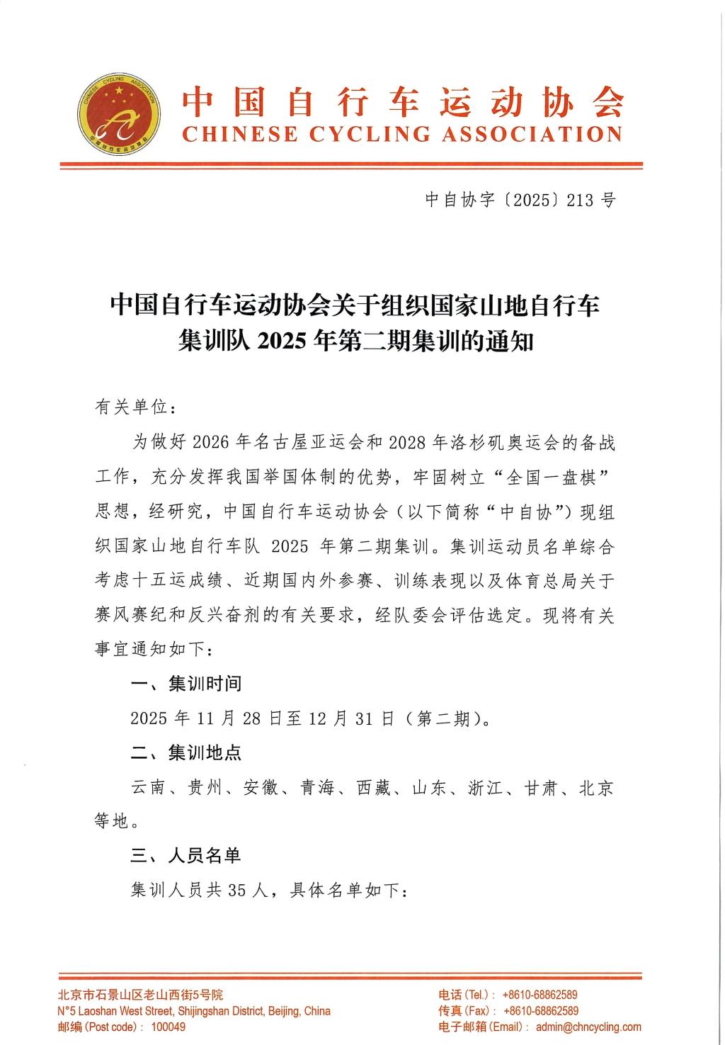 近日,中国自行车运动协会发布集训通知,为备战2026年名古屋亚运会与2028年洛杉矶奥运会,组建国家山地自行车集训队2025年第二期集训队。我院3名学生,1名教师入选35人集训名单,为学校体育教育再添荣光。