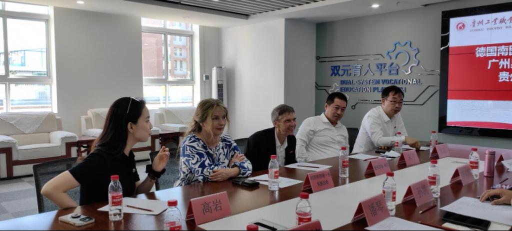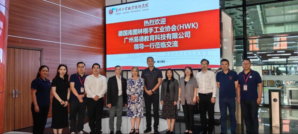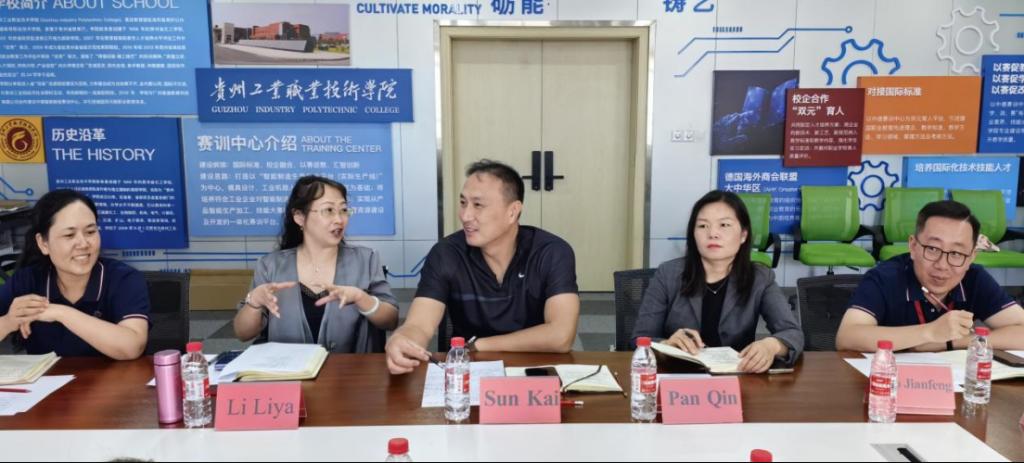 2025年9月1日,贵州工业职业技术学院在中德智能制造赛训中心会议室与德国南图林根手工业协会(HWK)、广州易德教育科技有限公司进行座谈交流。学院副院长孙凯,国际教学部部长潘琴,智能制造工程系主任李莉娅、副主任韩鹂、何灏等主要负责同志参加座谈;德国南图林根手工业协会总经理(培训中心负责人)Manfred Tietz、国际教育主管Astrid Friedrich、广州易德教育科技有限公司总经理宋宇、副总经理曾鹏共同出席会议。
