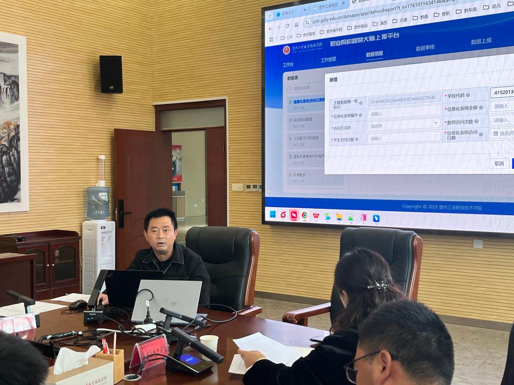 2025年10月21日上午10:00,信息管理中心在图信大楼101会议室组织召开了全国职业院校数字基座数据上报工作推进会。会议由学院党委委员副院长刘林主持,信息管理中心全体人员及学院各相关部门负责人参加会议。