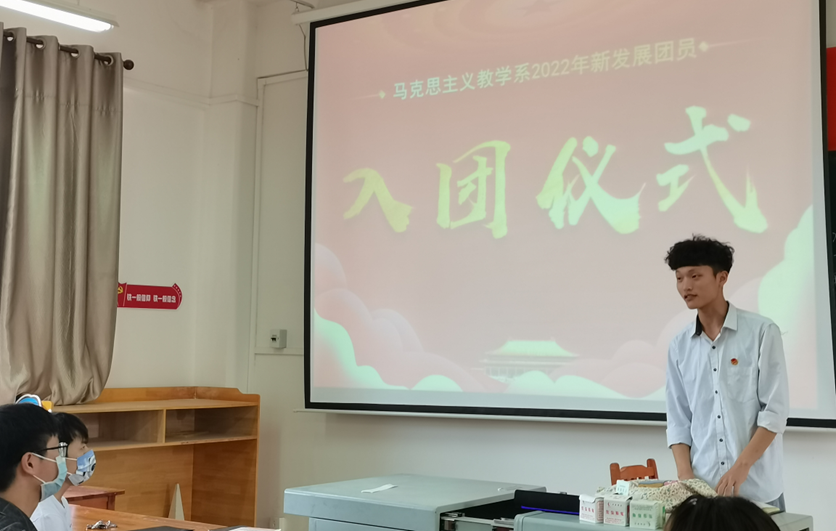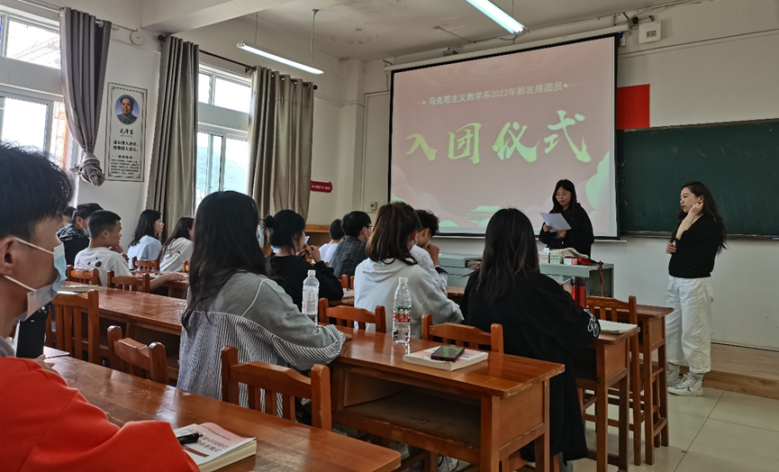 百年栉风沐雨,百年砥砺前行。在中国共产主义青年团成立100周年之际,为引导青年学子厚植爱党爱国的情感,马克思主义教学系于5月6日上午在清镇校区求知楼510教室举行新发展团员入团仪式。辅导员张清灵老师、全体团员学生以及2022年新发展团员参加仪式。