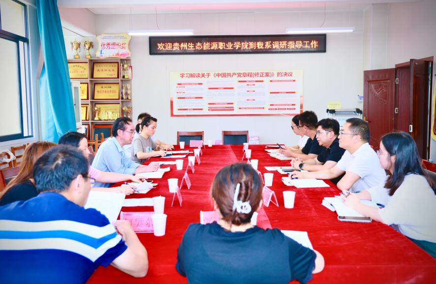2025年9月3日下午,贵州生态能源职业学院纪委书记全宏波一行9人到访我系开展调研交流活动,会议于观山湖校区人文与艺术系会议室举行,会议由我系党总支书记孔德华主持。