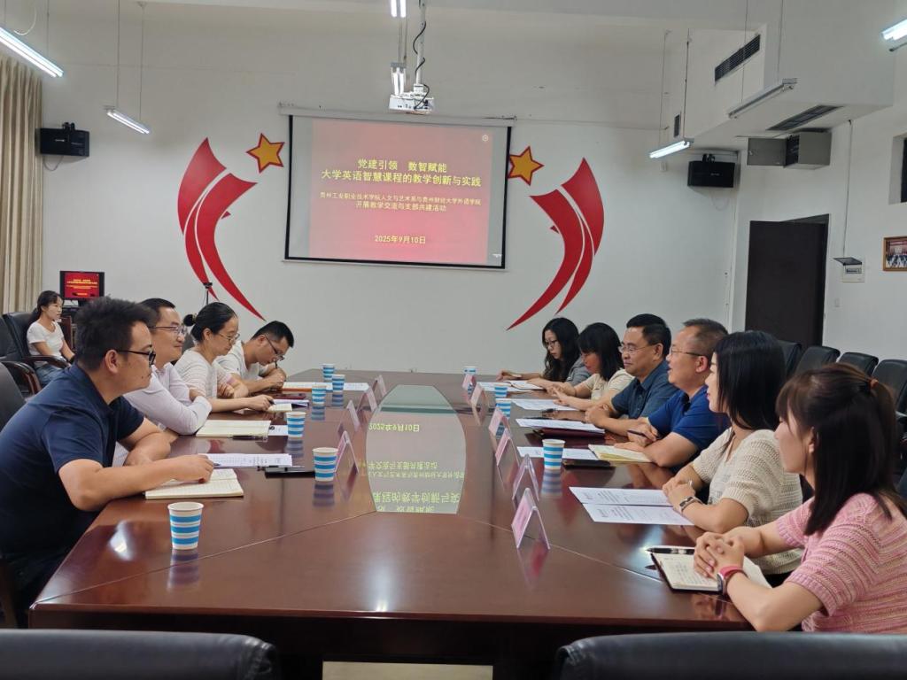 2025年9月10日,正值教师节,人文与艺术系党总支教工党支部全体党员在党支部书记吴伟的带领下,赴贵州财经大学(花溪校区)外语学院,与该院共同开展九月份主题党日活动。活动于励学楼301会议室举行,贵州财经大学外语学院党委书记黄贵平主持。
