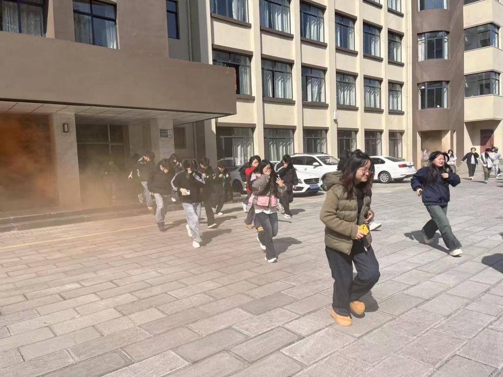 接到指令后,各班级辅导员、班主任迅速组织学生用湿毛巾捂住口鼻,弯腰低姿,按照预定疏散路线,快速、有序地向教学楼前广场等安全区域撤离。疏散过程中,学生干部协助维持秩序,避免拥挤踩踏;后勤安保人员在楼梯口、拐角处等关键位置引导疏散,确保每一名师生都能安全撤离。整个演练过程紧张有序,各环节紧密衔接,达到了预期效果。