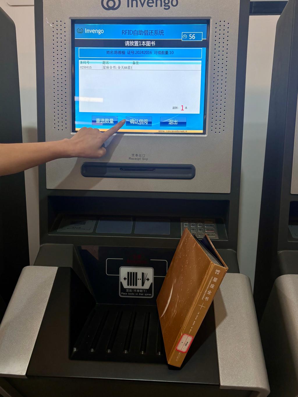 五、将需要借阅的图书放置到图书识别区,待识别图书名称后,点击“确认借阅”,即可实现借书。