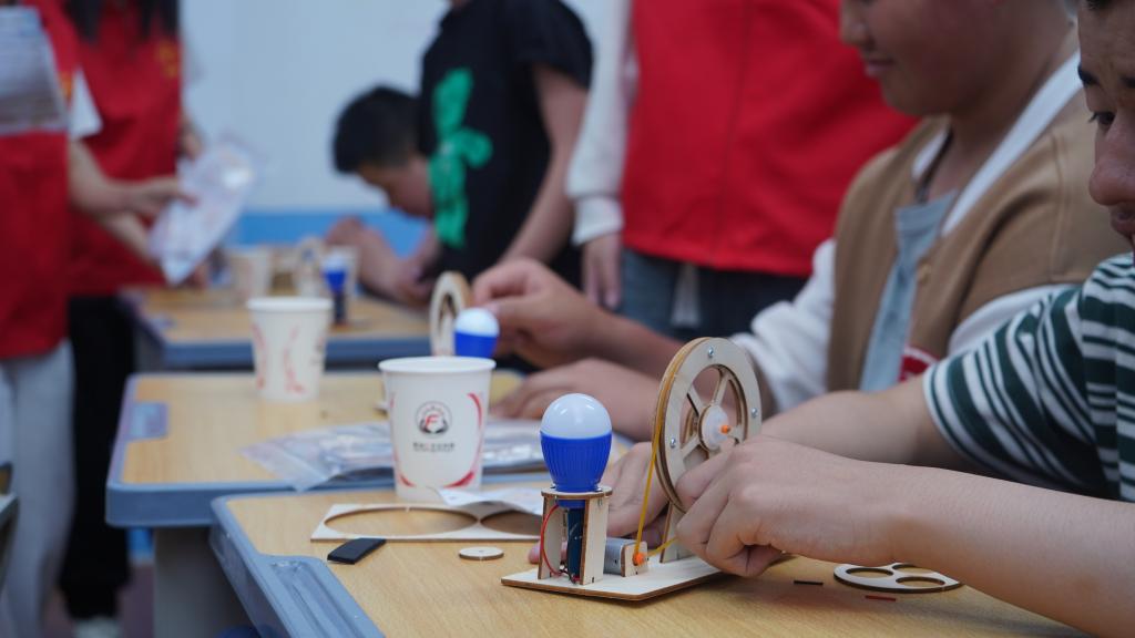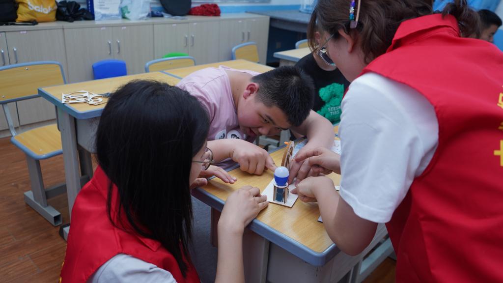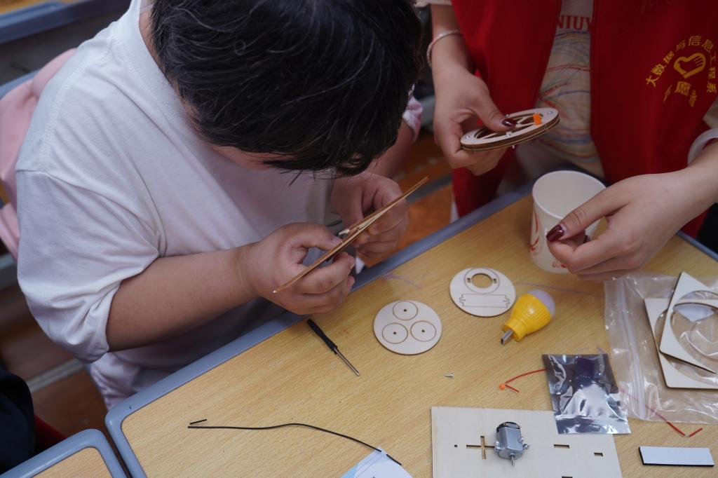 为了开展科普教育,满足儿童探索的好奇心,志愿服务实践团队来到清镇市特殊教育学校培智六年级,以“电能的诞生与旅行”为主线,通过“感知-解构-创造”的三阶教学法,开展了手摇发电机拼装志愿服务活动。以讲授手摇发电机工作原理及拼装过程为载体,开启科技启蒙教育,提高了特殊儿童对现代科技的认识和理解,培养了他们对科学知识和技能的兴趣和探索精神,引导特殊儿童在动手实践中触摸科技脉搏。