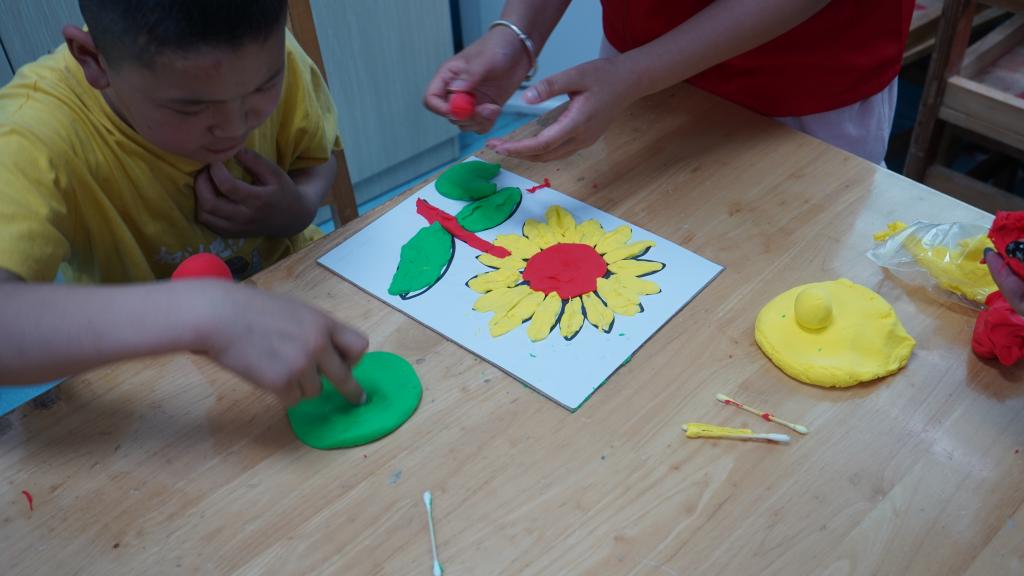 为了传递正能量,打开特殊儿童心扉,志愿服务实践团队来到清镇市特殊教育学校培智一年级,以“阳光与希望”为主题,开启了一场“自然认知-艺术转化-心灵对话”三重疗愈的粘土制作向日葵艺术实践。以介绍向日葵外形特征与精神品质为引子,通过创造粘土向日葵,引导特殊儿童通过手工创作表达情感,感受大自然神奇的力量,以艺术疗愈赋能成长,用爱与美育点亮他们的特殊心灵。