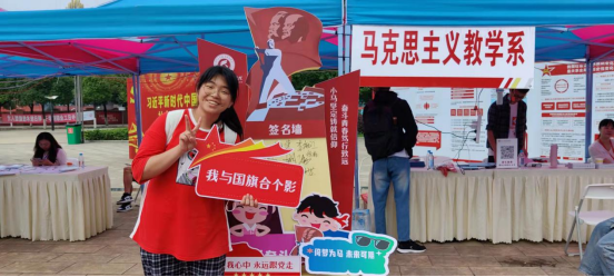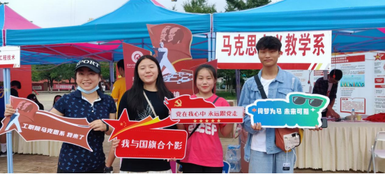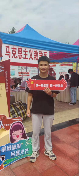 有的同学刚完成报到注册就加入了志愿者的队伍,主动承担迎新工作的重任,更快地融入到马克思主义教学系大家庭中。系部精心制作了极具专业特色的拍照手办新生们开心地合影留念。