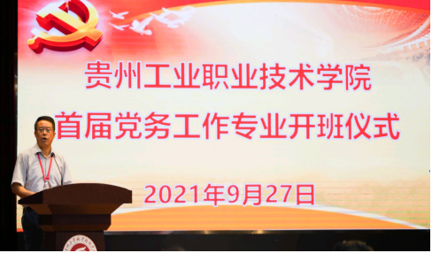 2021年9月27日,学院2021级首届党务工作专业开班仪式在清镇校区双创中心隆重举行。全体党委班子成员、副科级以上干部、马克思主义教学系全体教师,首届党务工作专业学生及辅导员出席了本次开班仪式。仪式由学院党委副书记、院长贺华中主持。