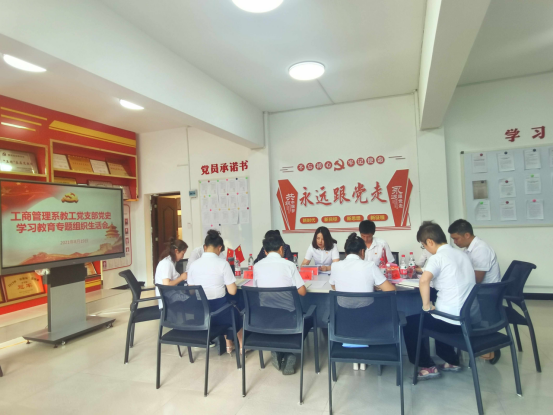 2021年8月19日14:30,工商管理系教工党支部在党员活动室召开党史学习教育专题组织生活会。学院党委副书记万山同志、党委委员、组织人事处处长刘林同志莅临指导,全院各党支部书记列席会议。会议由教工党支部书记龙正哲同志主持。